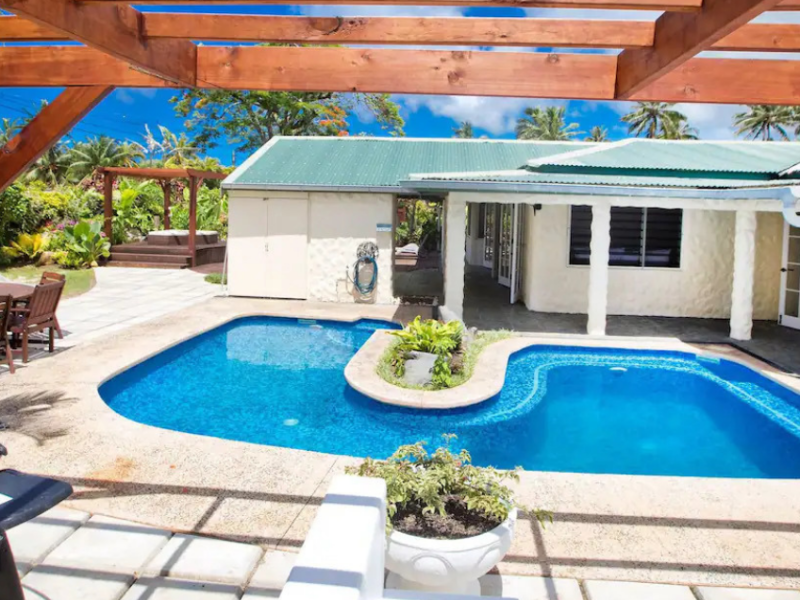 Spacious Family Living! Top South Coast Location & Pool! South Side, Titikaveka Beach Literally over the road from one of the best swimming and snorkelling beaches in Rarotonga, this 3-bedroom, 2-bathroom house is comfortably stylish and very spacious. Great value, Papa Jake’s House is set in tranquil surroundings….