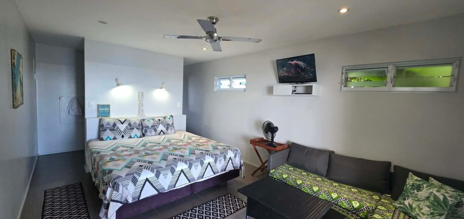 Titikaveka Beach Studio is an absolute beachfront studio in Rarotonga, located on the sought-after Titikaveka Lagoon on the island’s south coast. This is one of the best areas for swimming and snorkelling in Rarotonga.